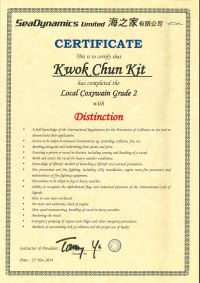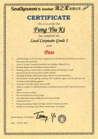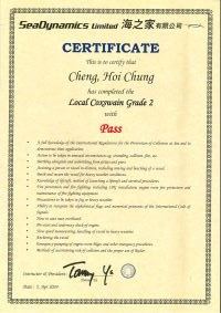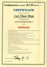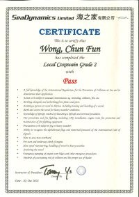 本人經一年多時間努力終於考獲二級營業船長牌。