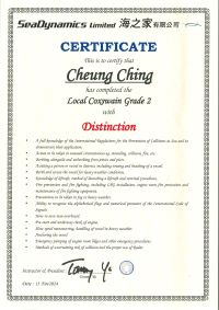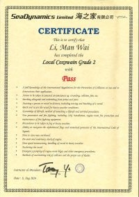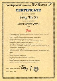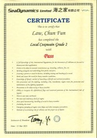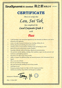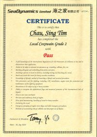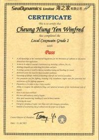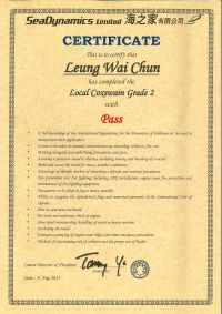 本人經一年多時間努力終於考獲二級營業船長牌。