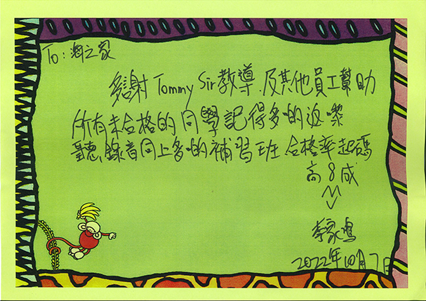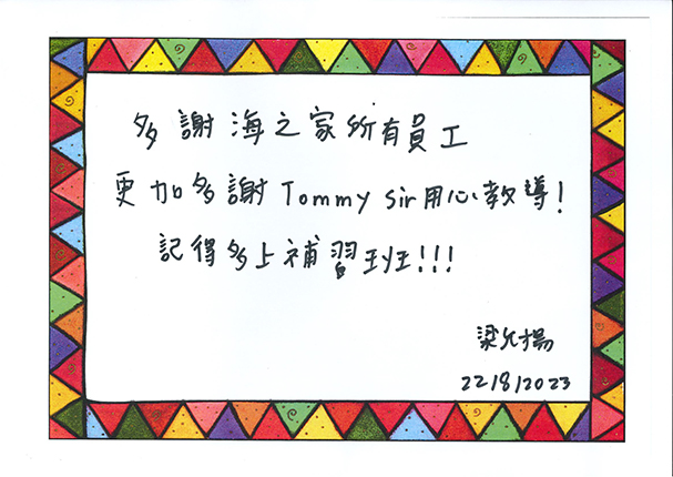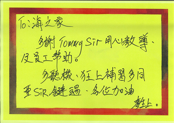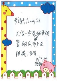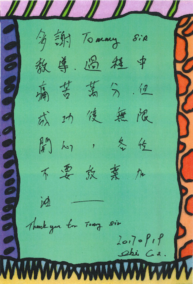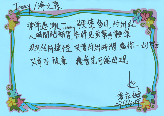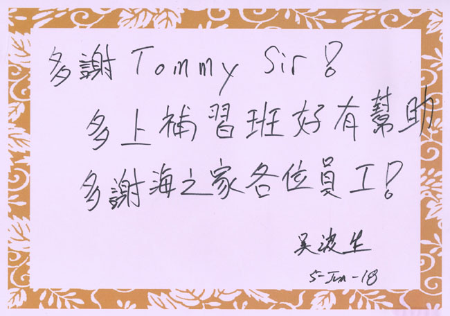 多謝Tommy Sir的愛心教導, 曾招樂 |