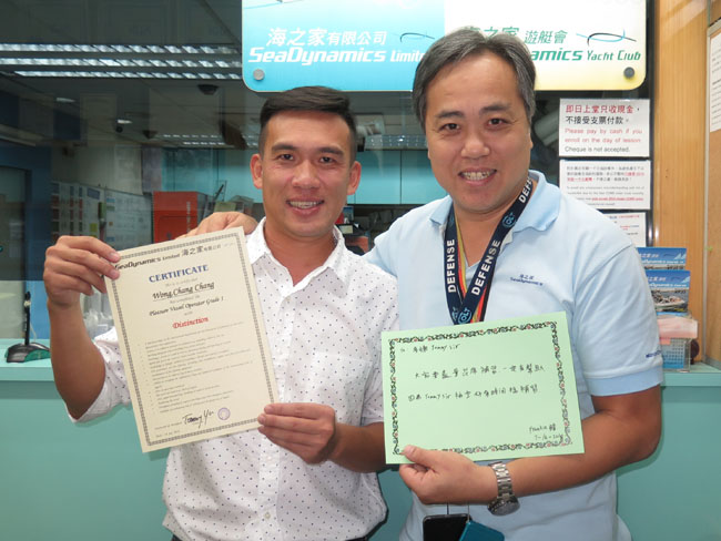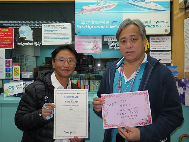 | 蘇家明先生及黎錦堂先生................一級操作人學生 - 可駕駛無限長度及無限馬力遊艇 | ||||||