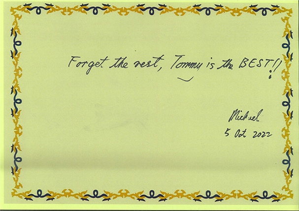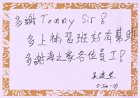 感謝Tommy Sir及所有員工 鄭進聲 |