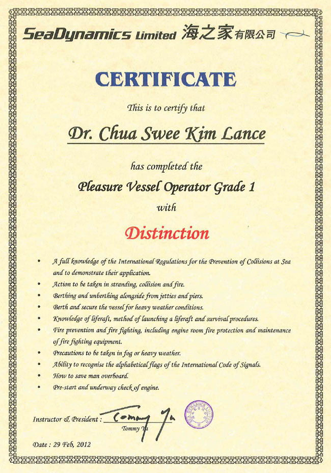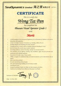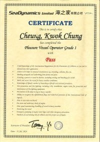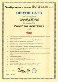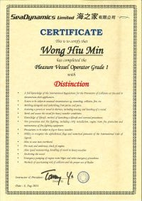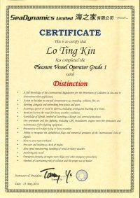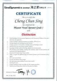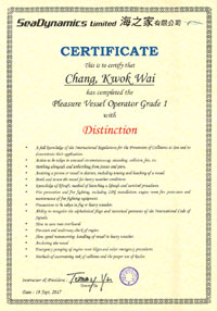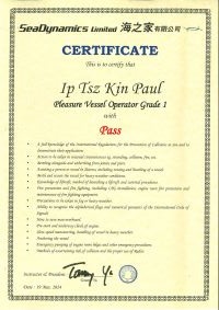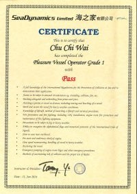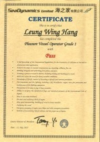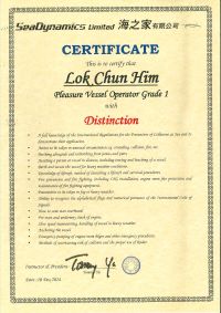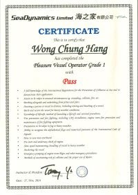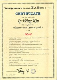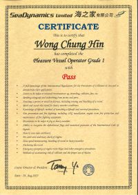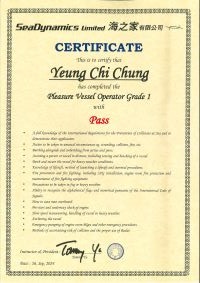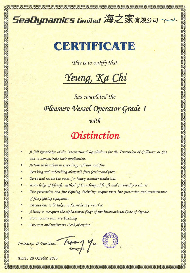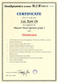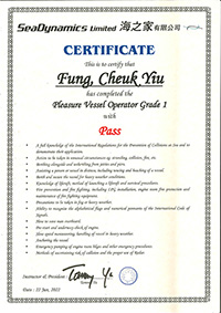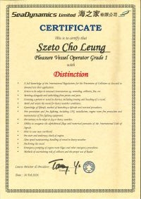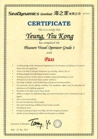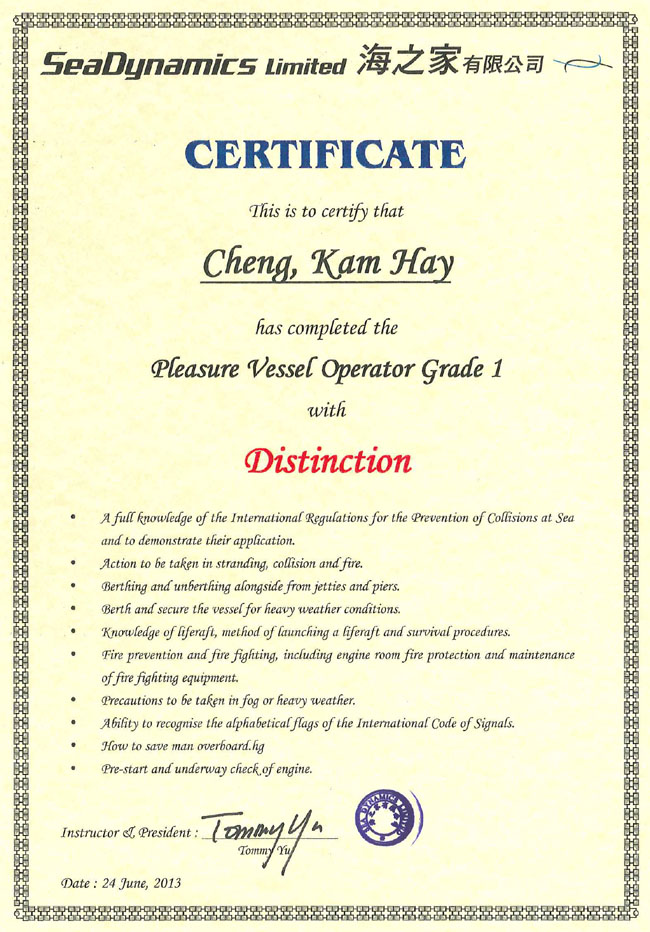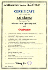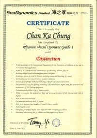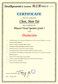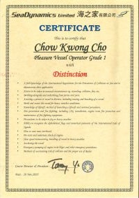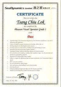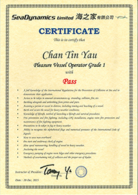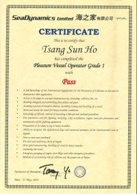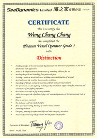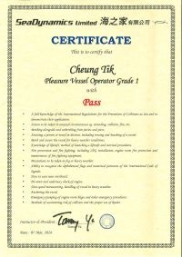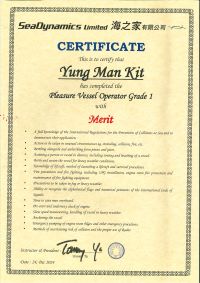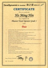 | From 陳超峰先生............. ....... . 一級操作人學生 - 可駕駛無限長度及無限馬力遊艇 | ||||||