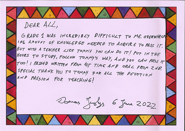 多謝Tommy!令我可以在10個月內考哂二級及一級合格!