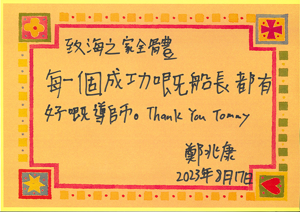致海之家全體人員: 多謝 Tommy校長當仔咁湊我 楊耀光 |