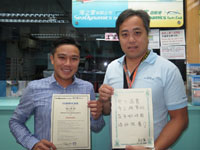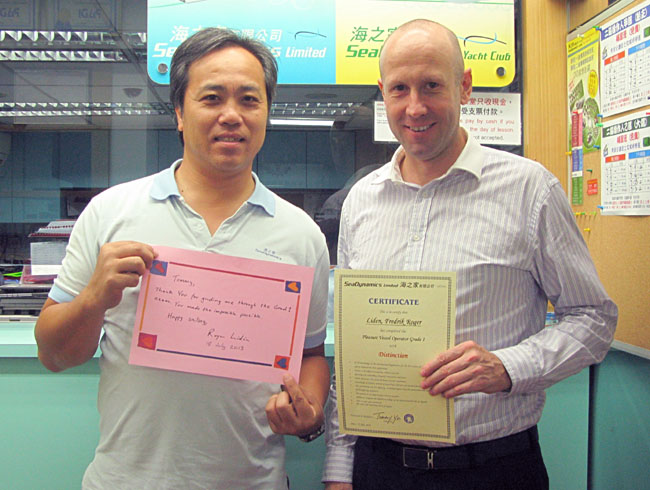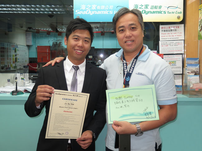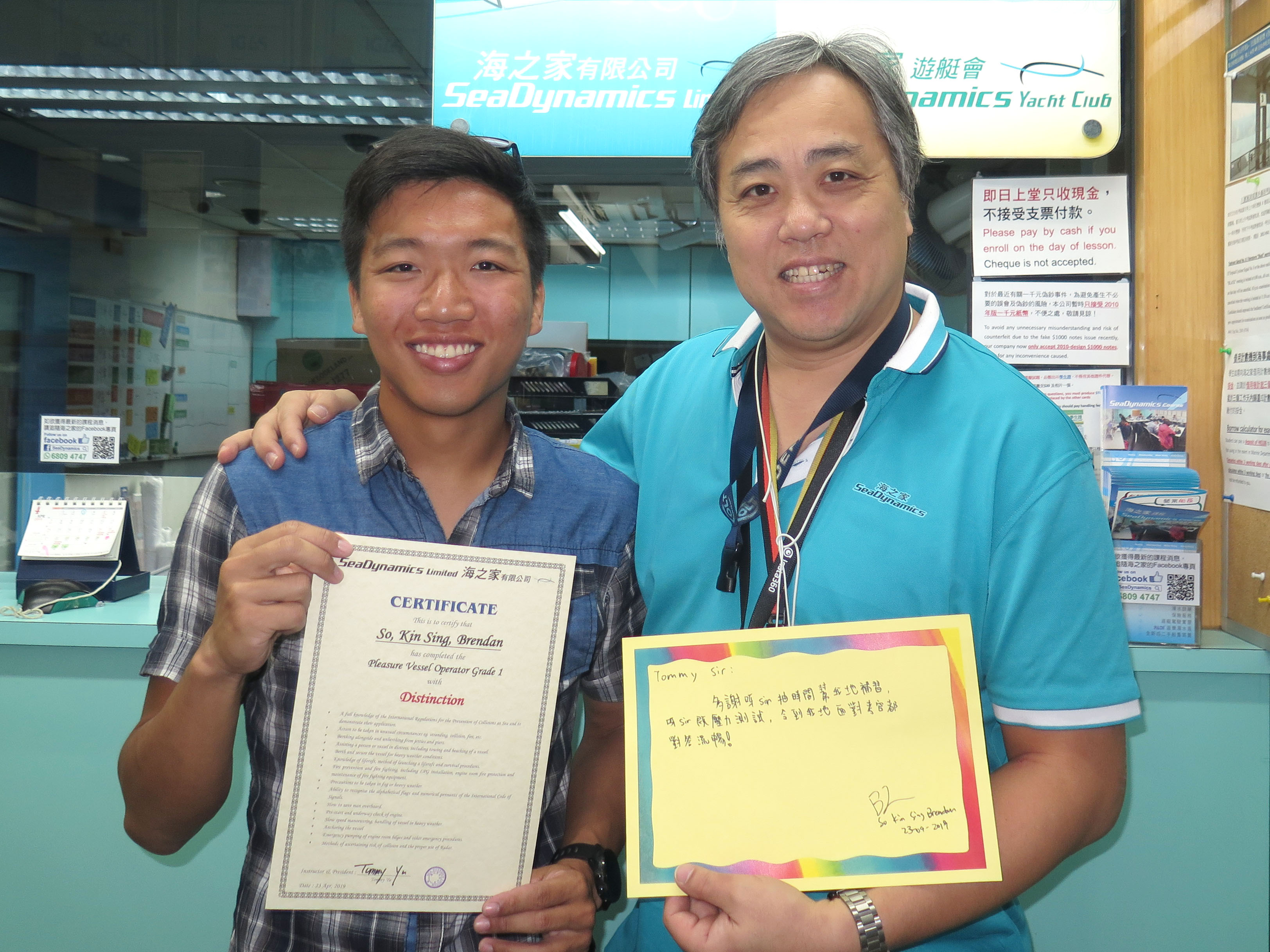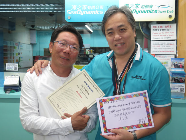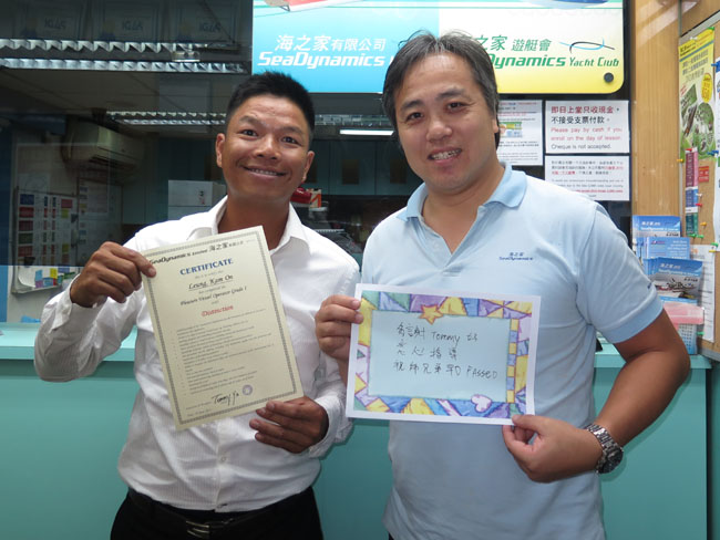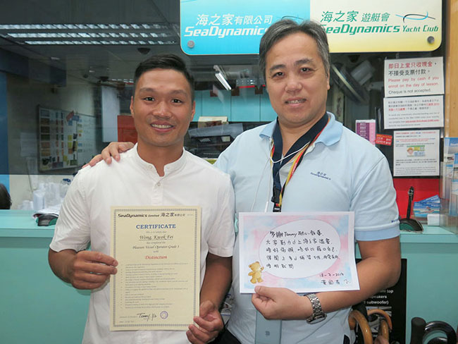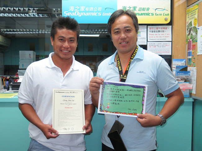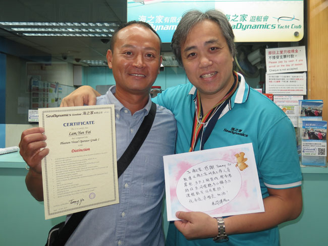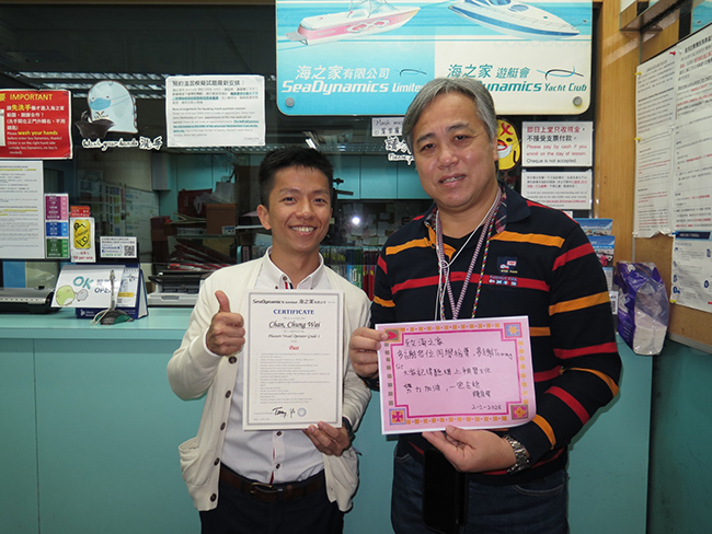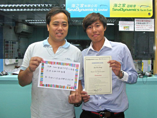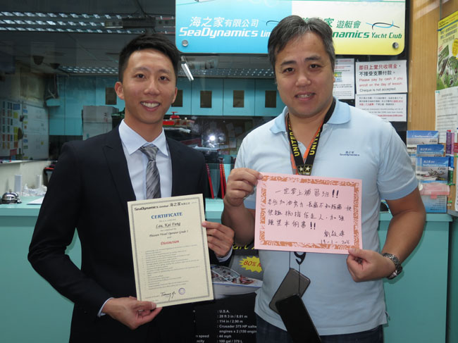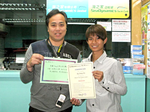 | 袁健文先生和何家樂先生..............一級操作人學生 - 可駕駛無限長度及無限馬力遊艇 | ||||||