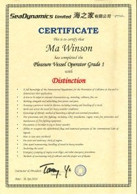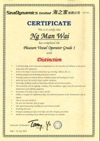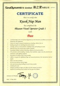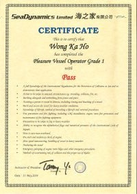 | From 黃家健先生............. ....... . 一級操作人學生 - 可駕駛無限長度及無限馬力遊艇 | ||||||