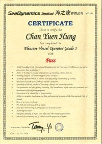 | 黃家豪先生生生................. 一級操作人學生 - 可駕駛無限長度及無限馬力遊艇 | ||||||