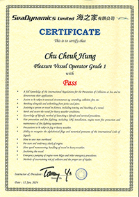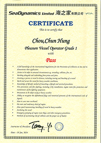 | 黃敬豪先生生生................. 一級操作人學生 - 可駕駛無限長度及無限馬力遊艇 | ||||||