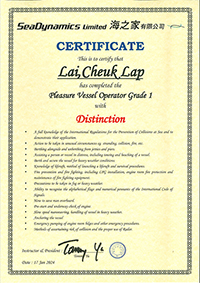 | 黎瑋賢先生生生................. 一級操作人學生 - 可駕駛無限長度及無限馬力遊艇 | ||||||