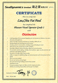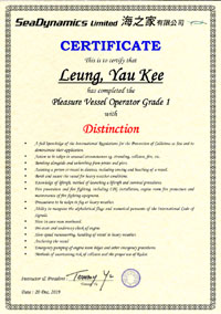 | 黎國成先生.......................一級操作人學生 - 可駕駛無限長度及無限馬力遊艇 | ||||||