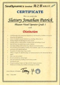 | From Mr. Robin Whittaker--............一級操作人學生 - 可駕駛無限長度及無限馬力遊艇 | ||||||