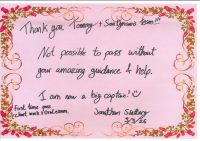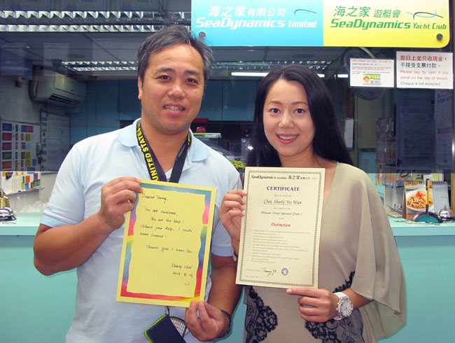 ![]() To: 海之家 多謝海之家導師的悉心教導, 好開心, 可以在咁短時間內考獲一級同埋二級操作人的資格! 學生 石依鷺上 Twiggy 30/11/2009 |
